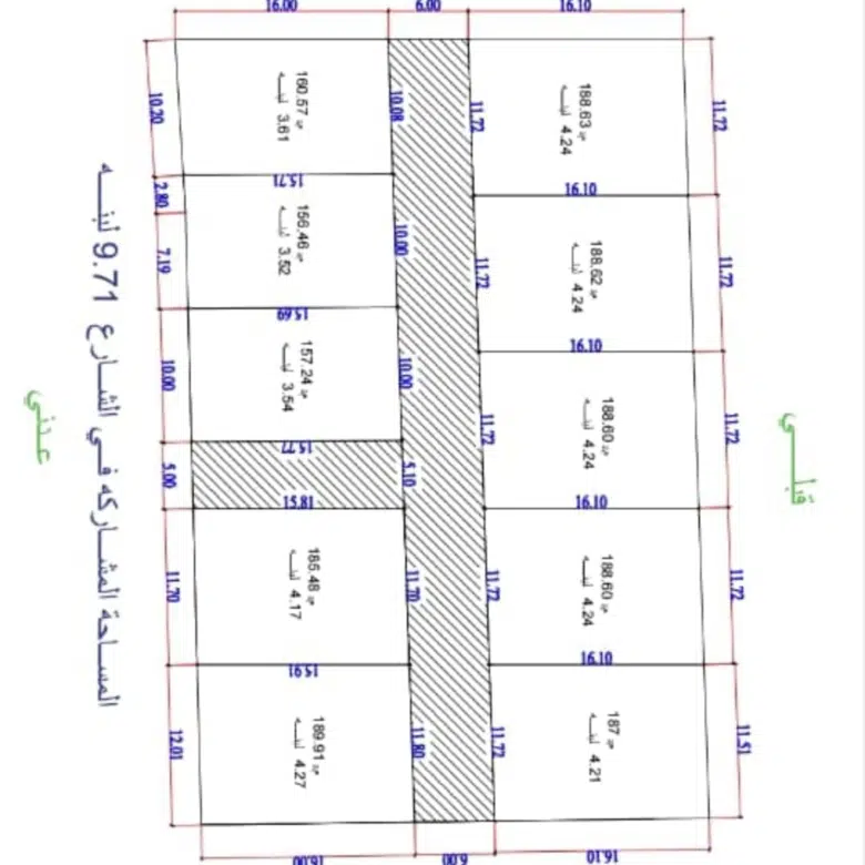 المساحة: متوفر لدينا عدة قطع بإجمالي حوالي 50 لبنة
