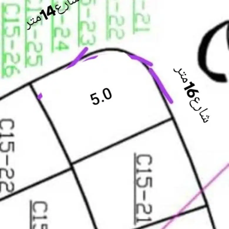 على شارعين 16 متر و 14 متر